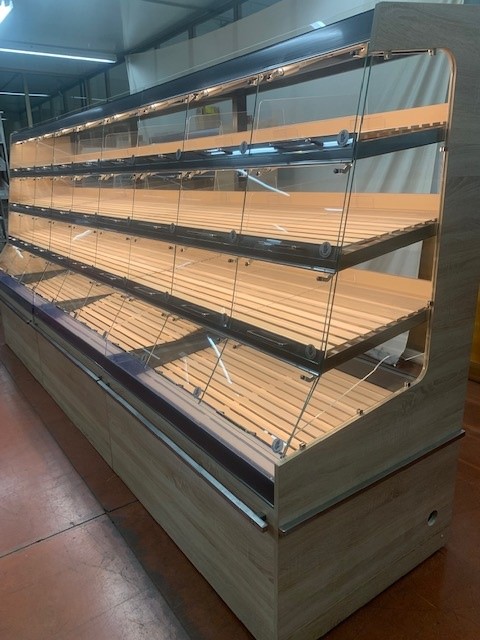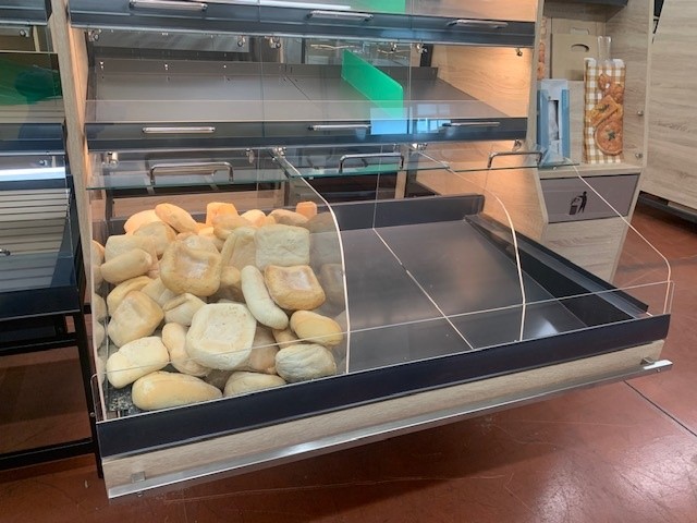 Telaio tubolare studiato per creare un unico piano continuativo senza barriere con ottimo display commerciale. Scomparti dinamici ottenuti con divisori mobili. Possibilità di averlo anche per pane confezionato.
